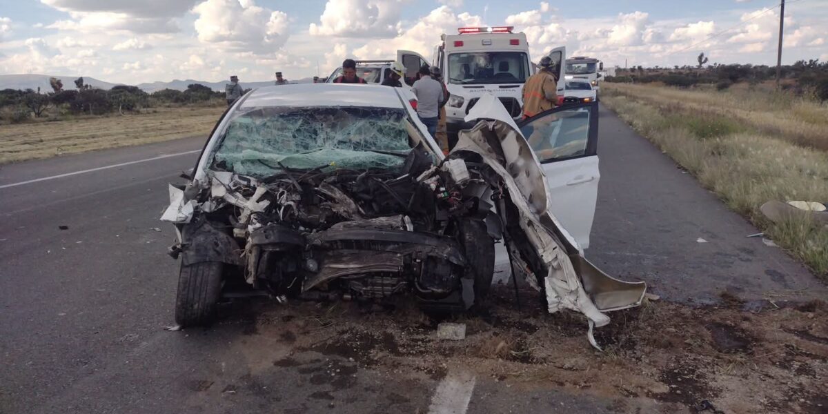 Guadalupe, Zac.- La tarde de este sábado, minutos antes de las 15:00 horas, se registró un violento y brutal choque sobre la carretera federal Zacatecas–Aguascalientes, a la altura del kilómetro 45, tramo conocido por los constantes accidentes que le han valido el nombre de la “carretera de la muerte”. De acuerdo con los primeros reportes, en el percance se vieron
