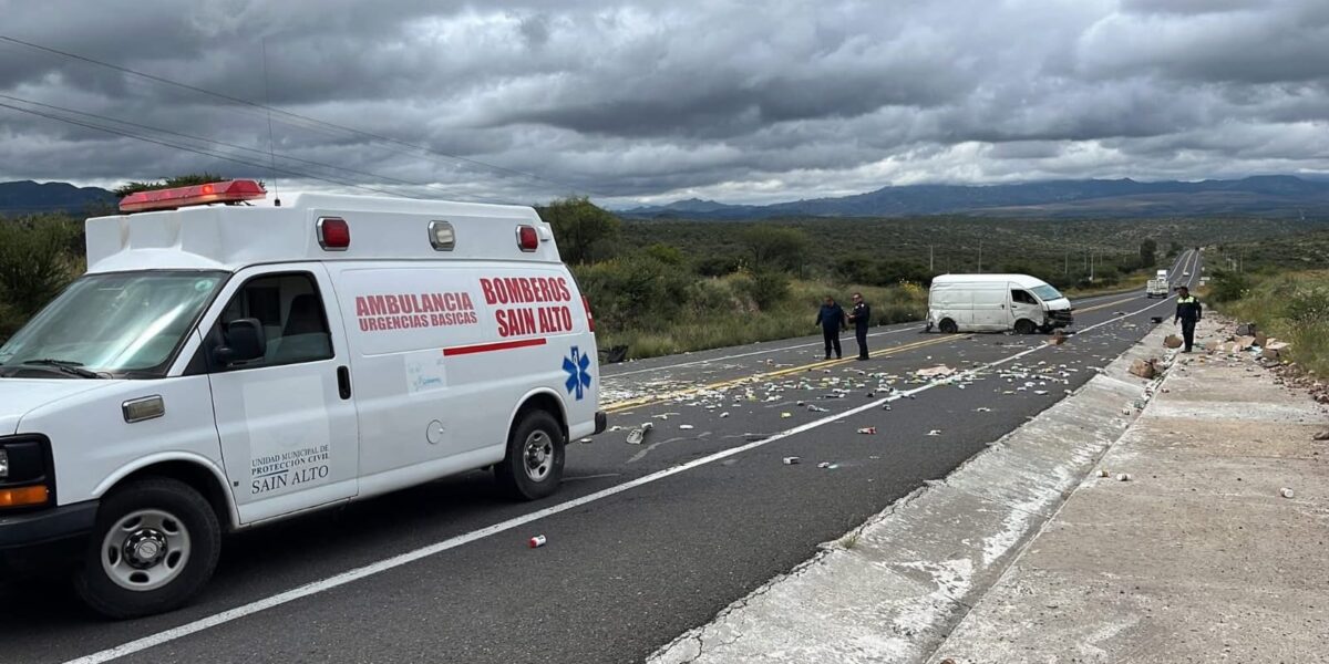 Fresnillo, Zac.- La mañana de este viernes se registró un aparatoso accidente sobre la carretera federal, a la altura del kilómetro 116, en las inmediaciones de la comunidad El Sauz, dejando como saldo preliminar al menos una persona lesionada y daños materiales de consideración. De acuerdo con el reporte de emergencia, una camioneta tipo Sprinter, color blanco, se impactó contra