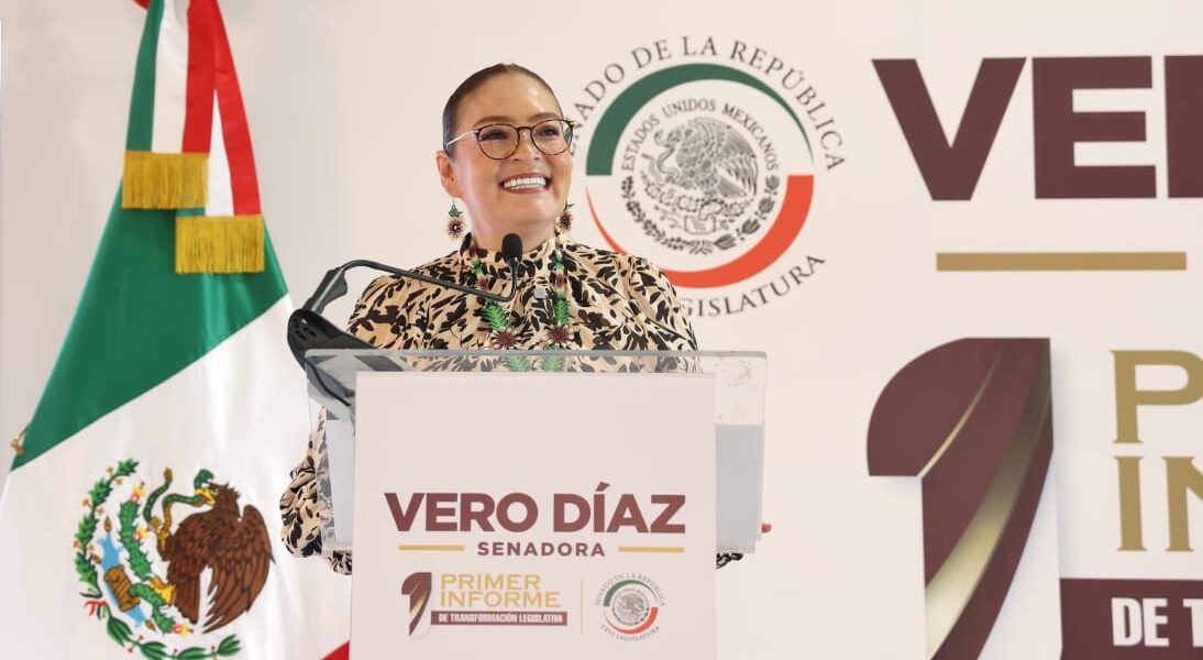 Jerez, Zac.- En un acto de unidad y respaldo ciudadano, la senadora Vero Díaz, integrante del grupo parlamentario de MORENA, rindió su Primer Informe Legislativo, Legislando por el Bienestar, en el Pueblo Mágico de Jerez. Ahí refrendó su compromiso con la Cuarta Transformación y destacó los avances logrados gracias al llamado Plan C, con reformas constitucionales que ya benefician a