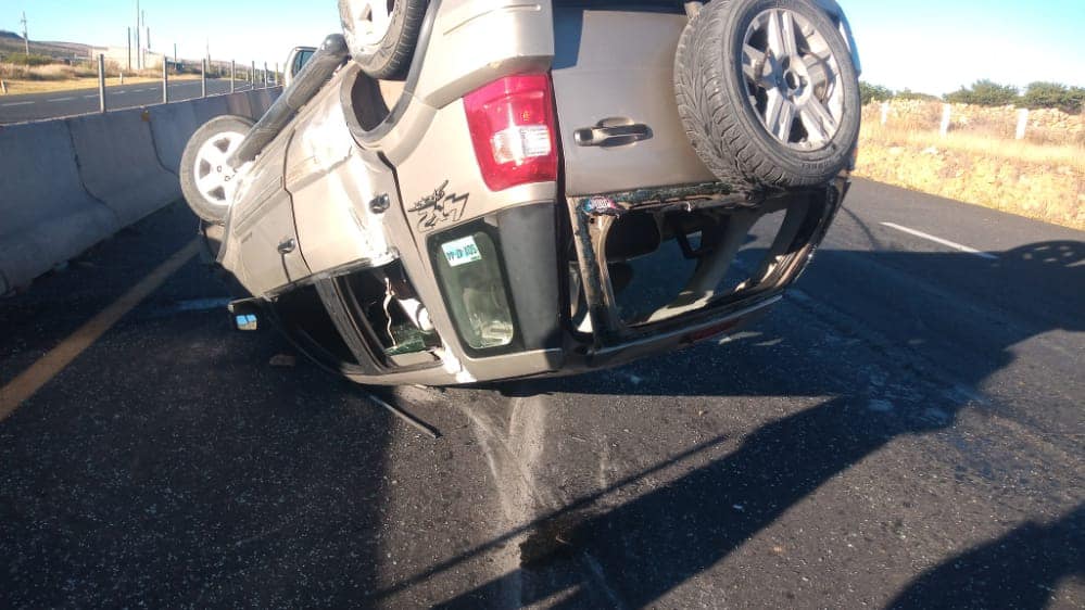 El reporte de los paramédicos, señala que en la ubicación estaba completamente volcada una camioneta tipo sub color arena de cuatro puertas con placas de circulación del estado de Jalisco.