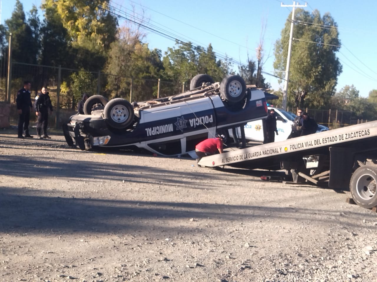 Guadalupe, Zac. – La tarde de este miércoles, se registró un aparatoso accidente sobre la carretera a Sauceda de la Borda, a la altura de la Unidad Deportiva de Guadalupe, luego de que una patrulla de la Policía Municipal terminara volcada cuando se dirigía a atender un reporte de emergencia.