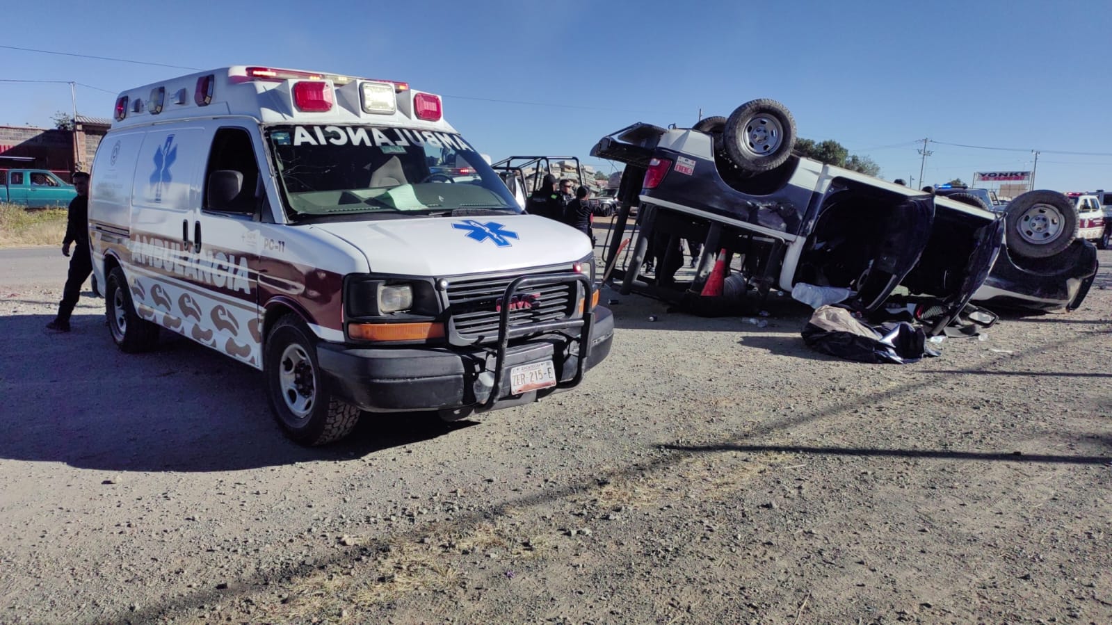 Dos policías lesionados tras volcadura de patrulla en Guadalupe