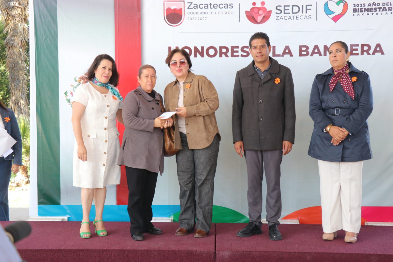 La entrega se llevó a cabo tras la ceremonia cívica de Honores a la Bandera, en las oficinas centrales del SEDIF, donde las familias beneficiarias se dieron cita para recibir el respaldo económico, que representa un respiro financiero y una muestra del acompañamiento institucional que brinda el Gobierno de Zacatecas.
