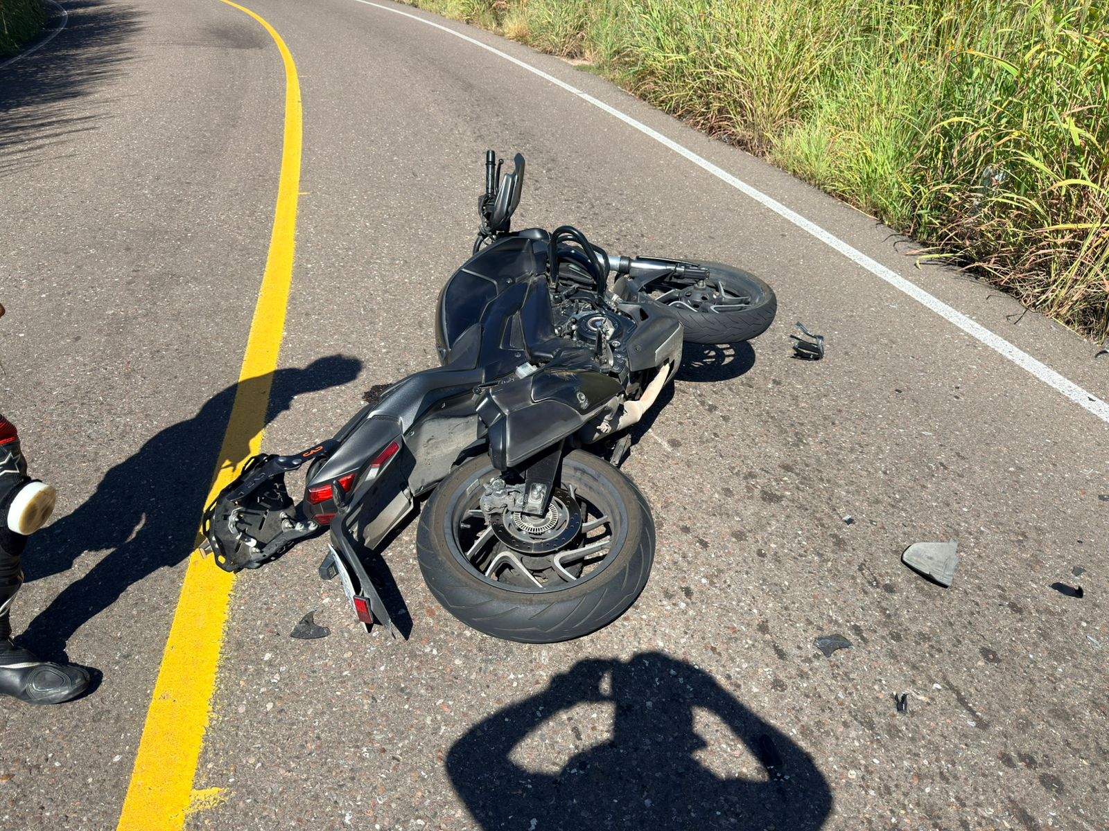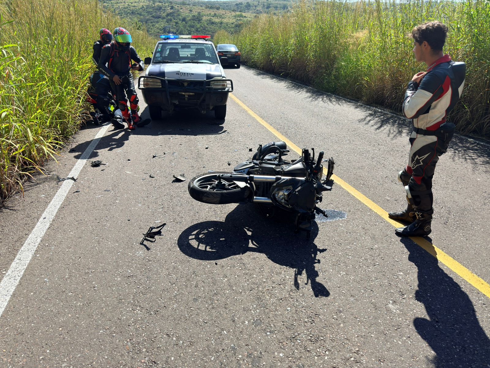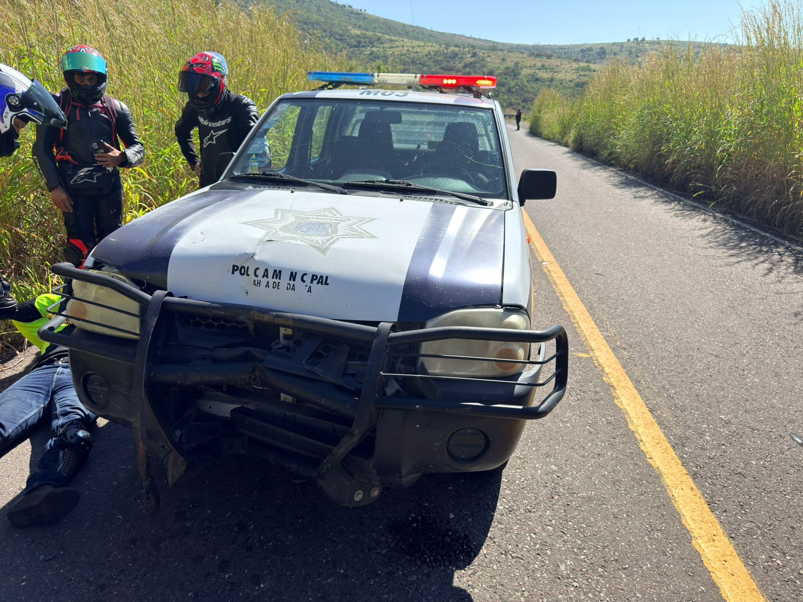 De acuerdo con los primeros reportes, el conductor de una motocicleta de 400 centímetros cúbicos, con placas del estado de Jalisco, circulaba a exceso de velocidad y, al llegar a una curva, perdió el control de la unidad, impactando de frente contra una patrulla de la Dirección de Seguridad Pública Municipal.